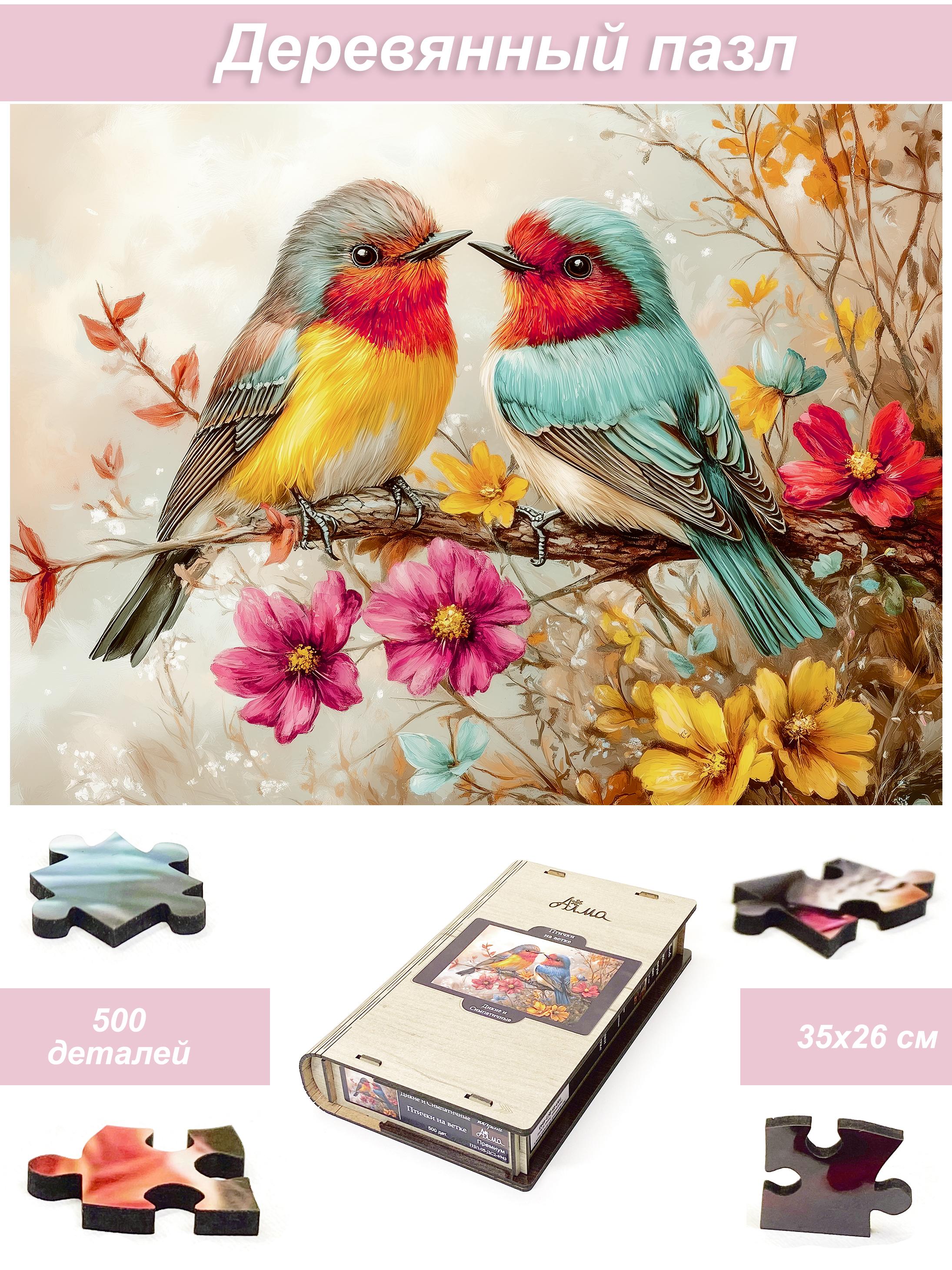 Пазл деревянный Алма 500 деталей Дикие и Симпатичные. Птички на ветке