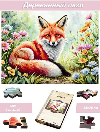 Пазл деревянный Алма 500 деталей Пушистые создания. Лиса в цветах