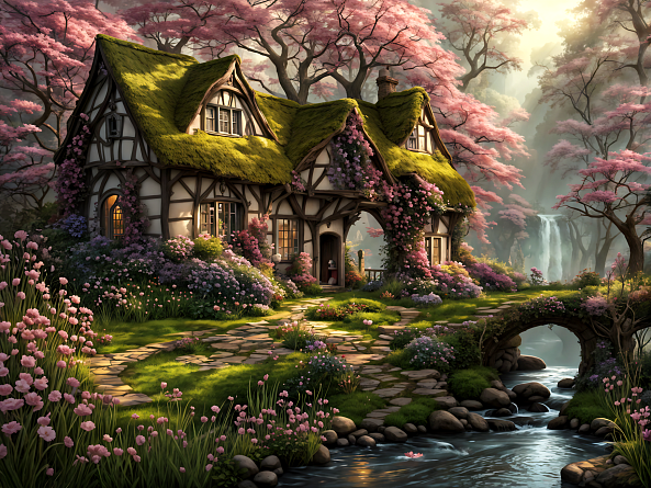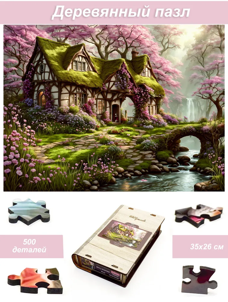 Пазл деревянный Алма 500 деталей Сказочные домики. Дом у водопада