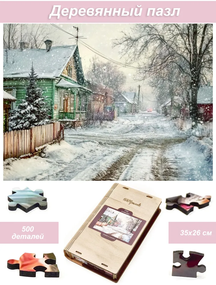 Пазл деревянный Алма 500 деталей Домик в деревне. Снег в декабре.