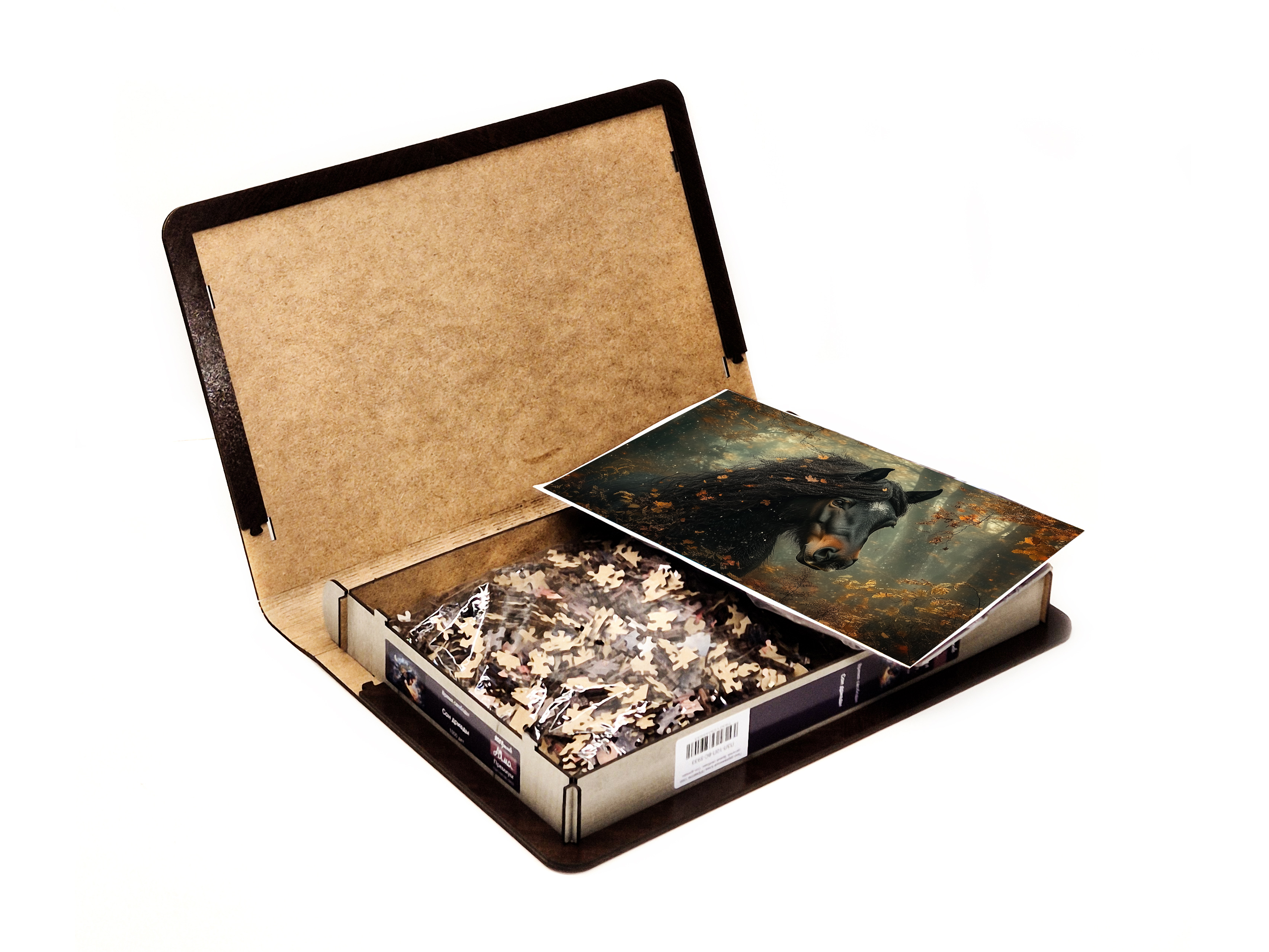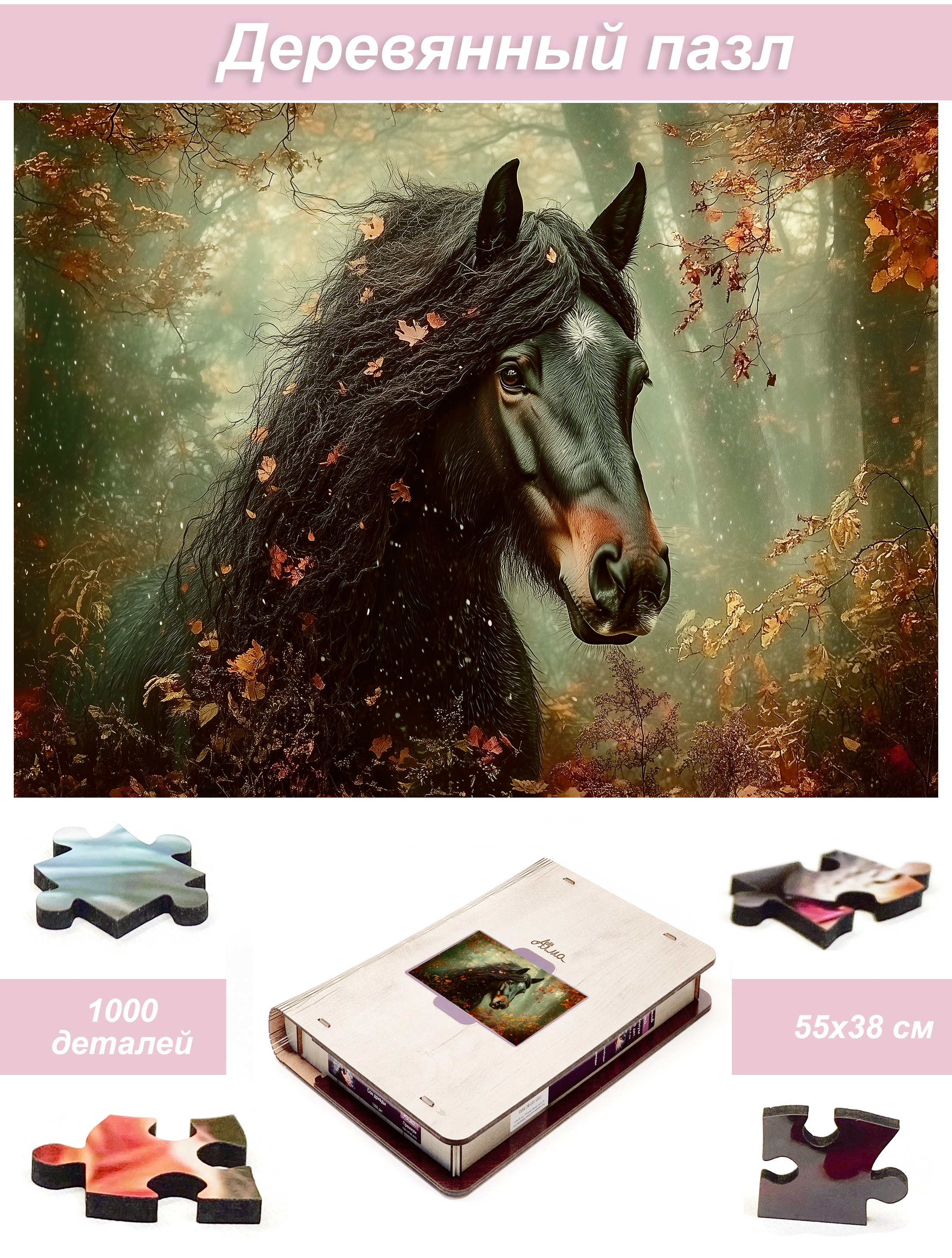 Пазл деревянный Алма ПРЕМИУМ 1000 деталей. Лошади. Лошадь и золото осени