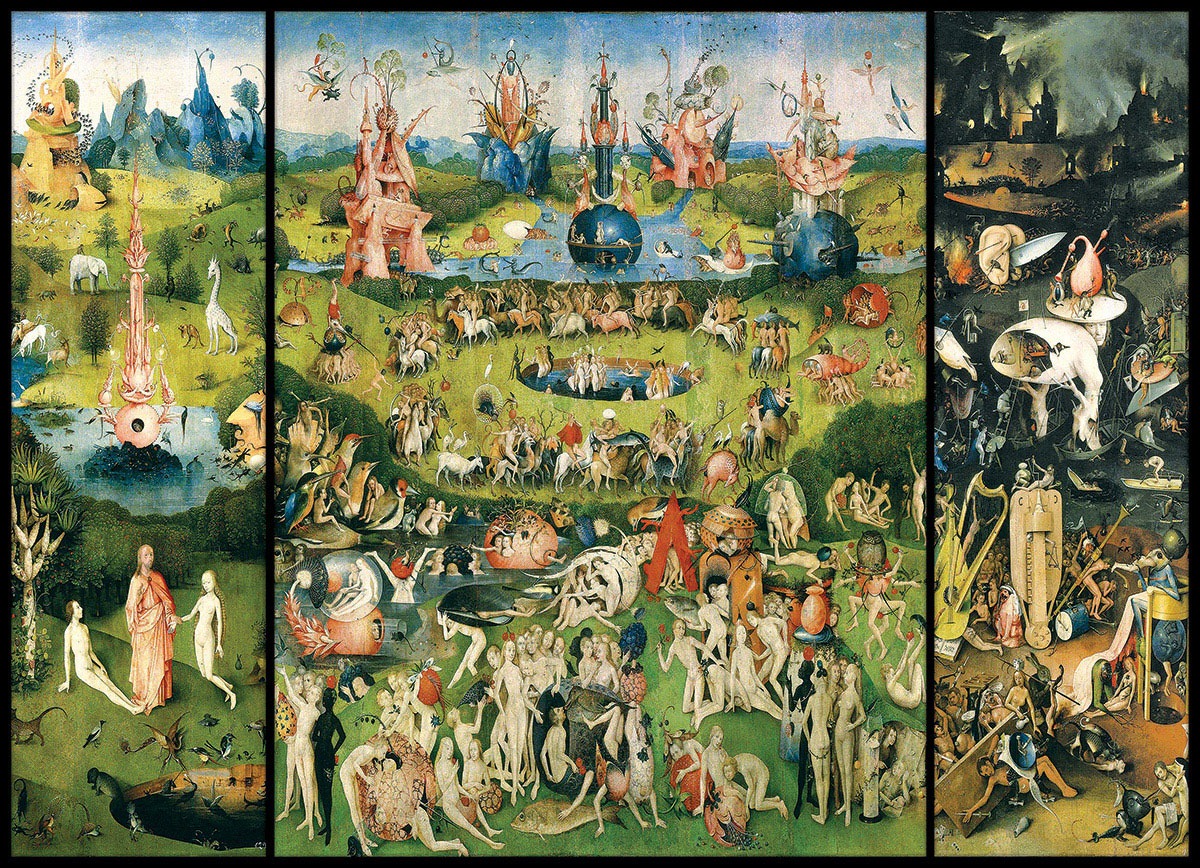 Репродукция известной картины Иеронима Босха, Сад земных наслаждений, триптих.
