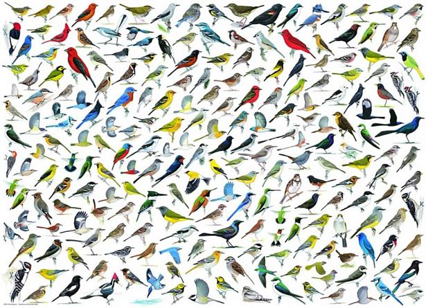 Коллаж на 2000 элементов с разными птицами. Можно просто собирать и наслажадаться, можно изучает пернатых. Воробей, сорока, дятел, синица, самые разные, большие, маленькие, разных окрасов, из разных мест.