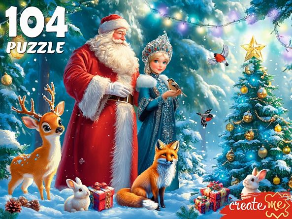 Пазл Рыжий Кот 104 деталей: Сказка у новогодней елки