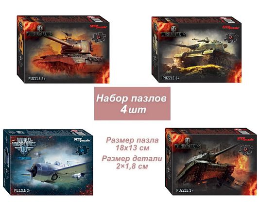 Набор 4 пазлов по 54 детали Step: World of Tanks (71171)