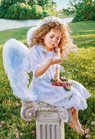 Ангел с цветами на солнечной поляне.