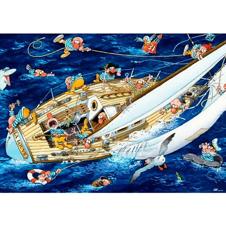 Пазл с мультяшным юмористическим изображением парусника. Художник Жан-Жак Лоуп.