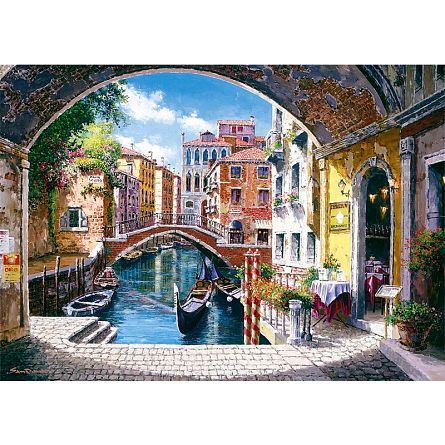 Венеция - живописный и светлый пейзаж, на котором изображен один из многочисленных венецианских каналов.  Прекрасный выбор как для любителей пазлов, так и для тех, кто ищет оригинальное дополнение к домашнему интерьеру.