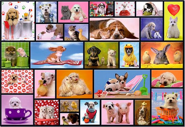 Много милых животных в одном пазле. Совершено разные, рыжие, палевые, черные, серые, на любой вкус.