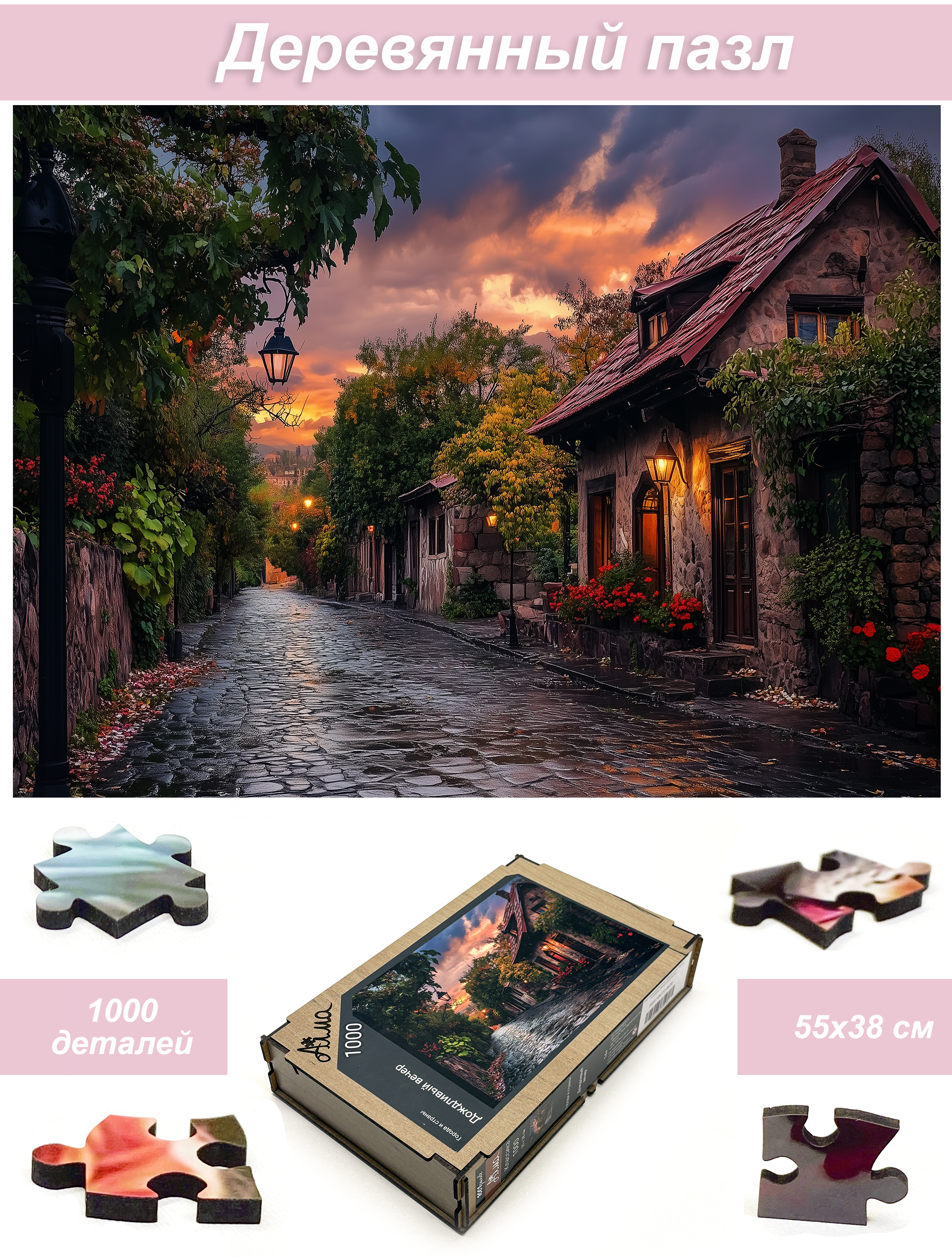 Пазл Алма деревянный 1000 деталей Города и страны. Дождливый вечер
