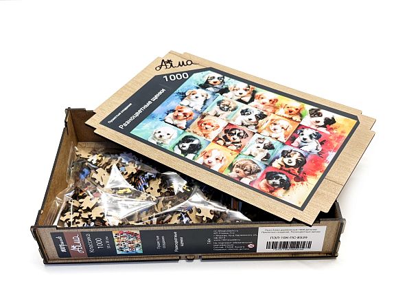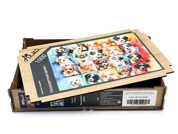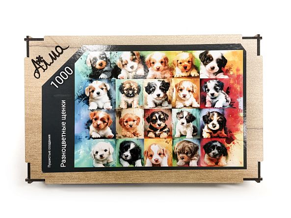 Пазл Алма деревянный 1000 деталей Пушистые создания. Разноцветные щенки