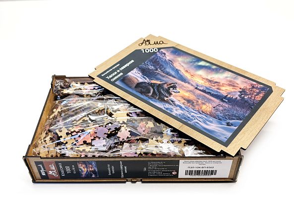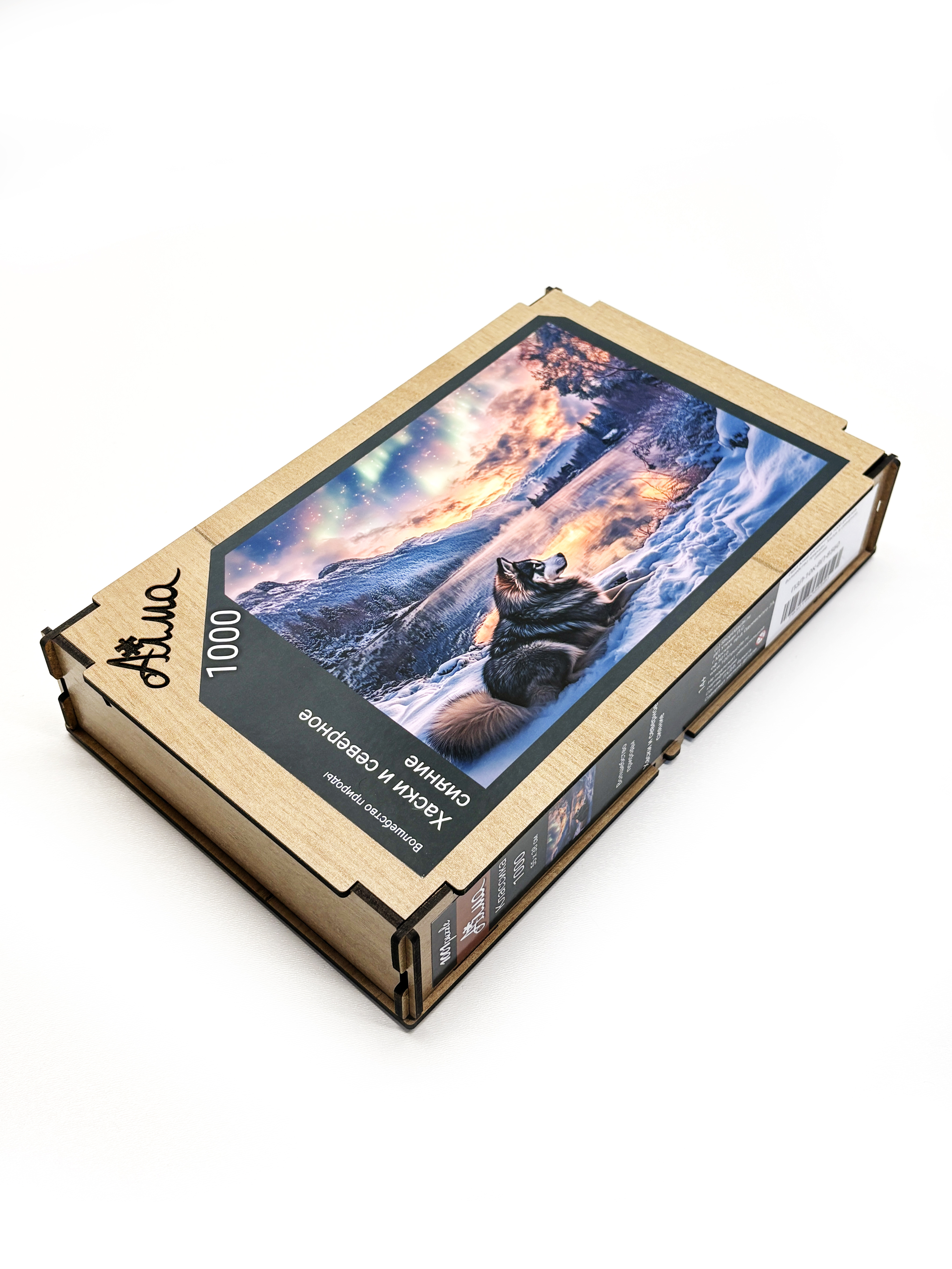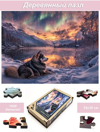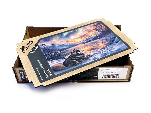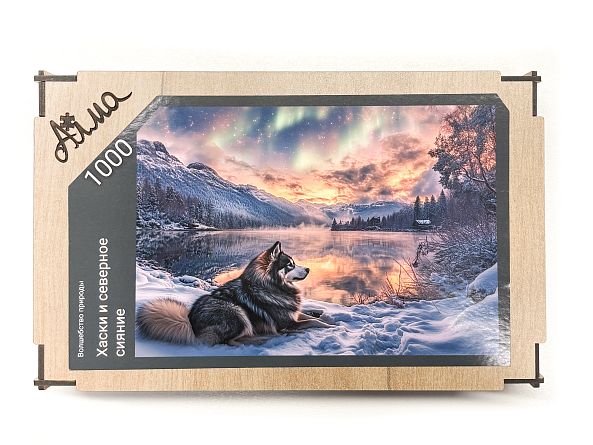 Пазл Алма деревянный 1000 деталей Волшебство природы. Хаски и северное сияние