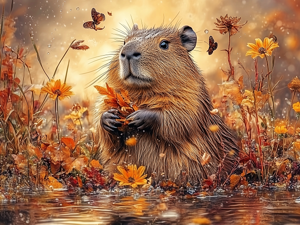 Пазл Алма деревянный 500 деталей. Дикие и симпатичные. Осенняя капибара