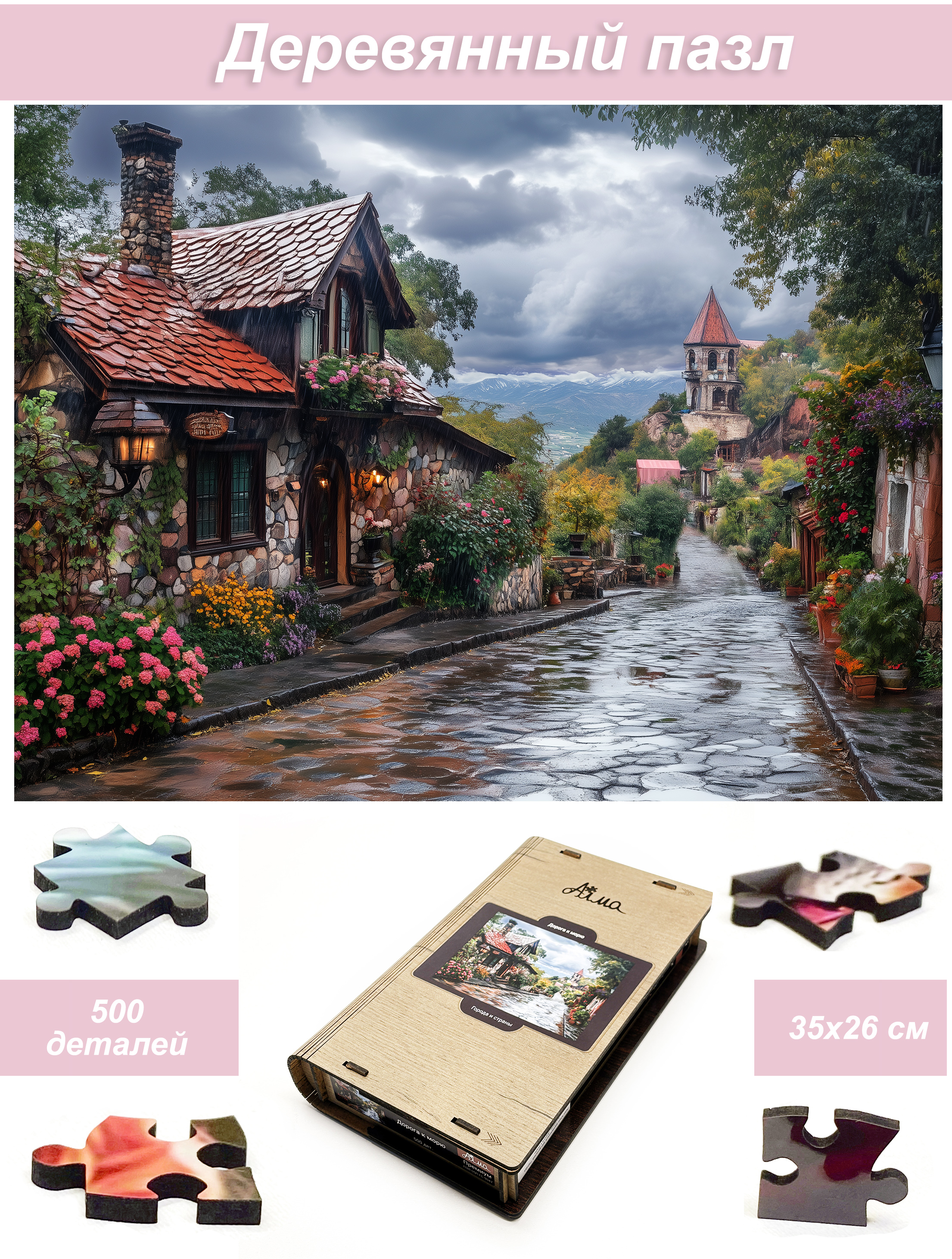 Пазл Алма деревянный 500 деталей. Города и страны. Дорога к морю