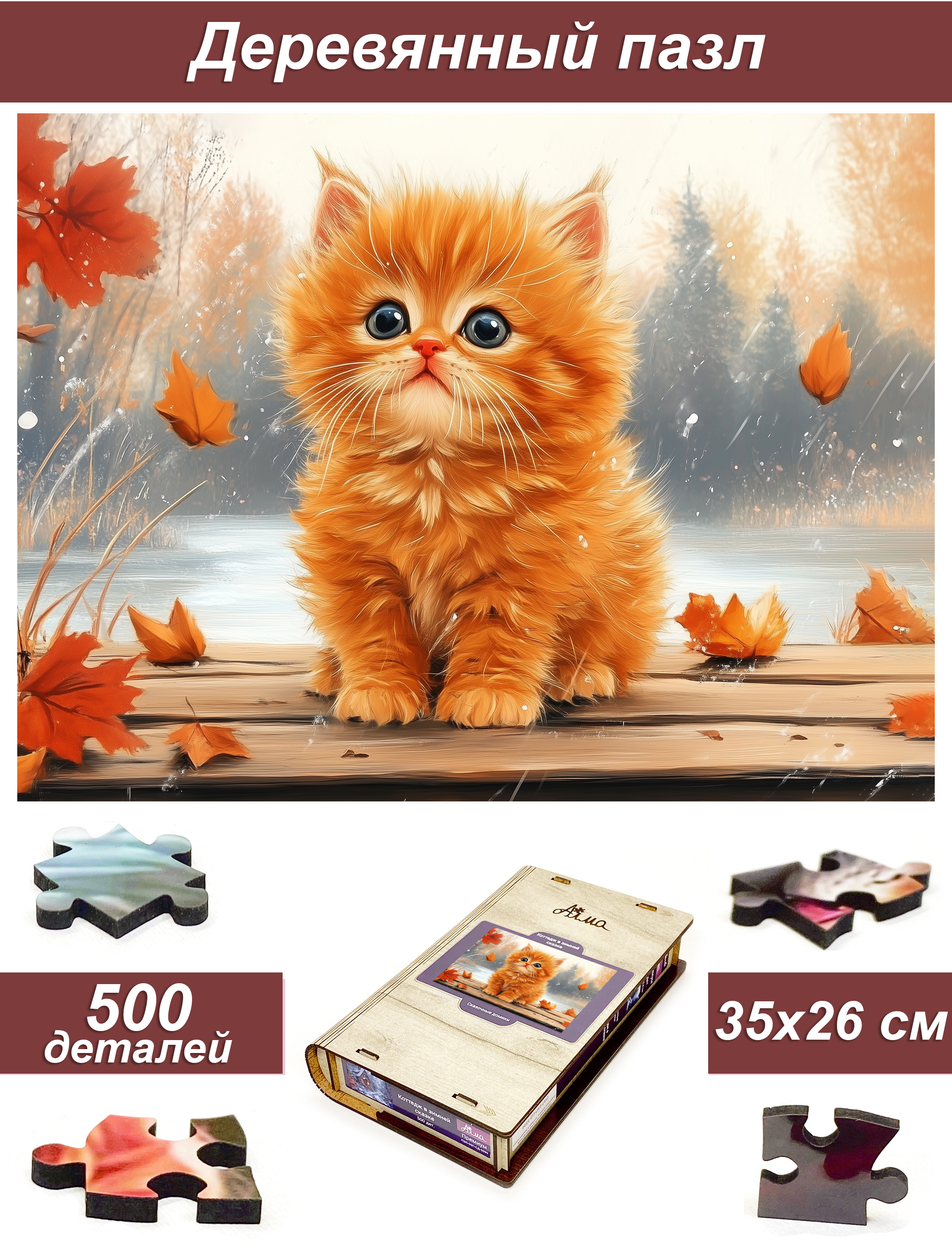 Пазл Алма деревянный 500 деталей. Пушистые создания. Осенний кот