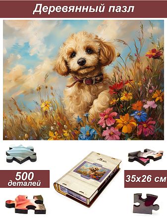 Пазл Алма деревянный 500 деталей. Пушистые создания. Пудель и цветы