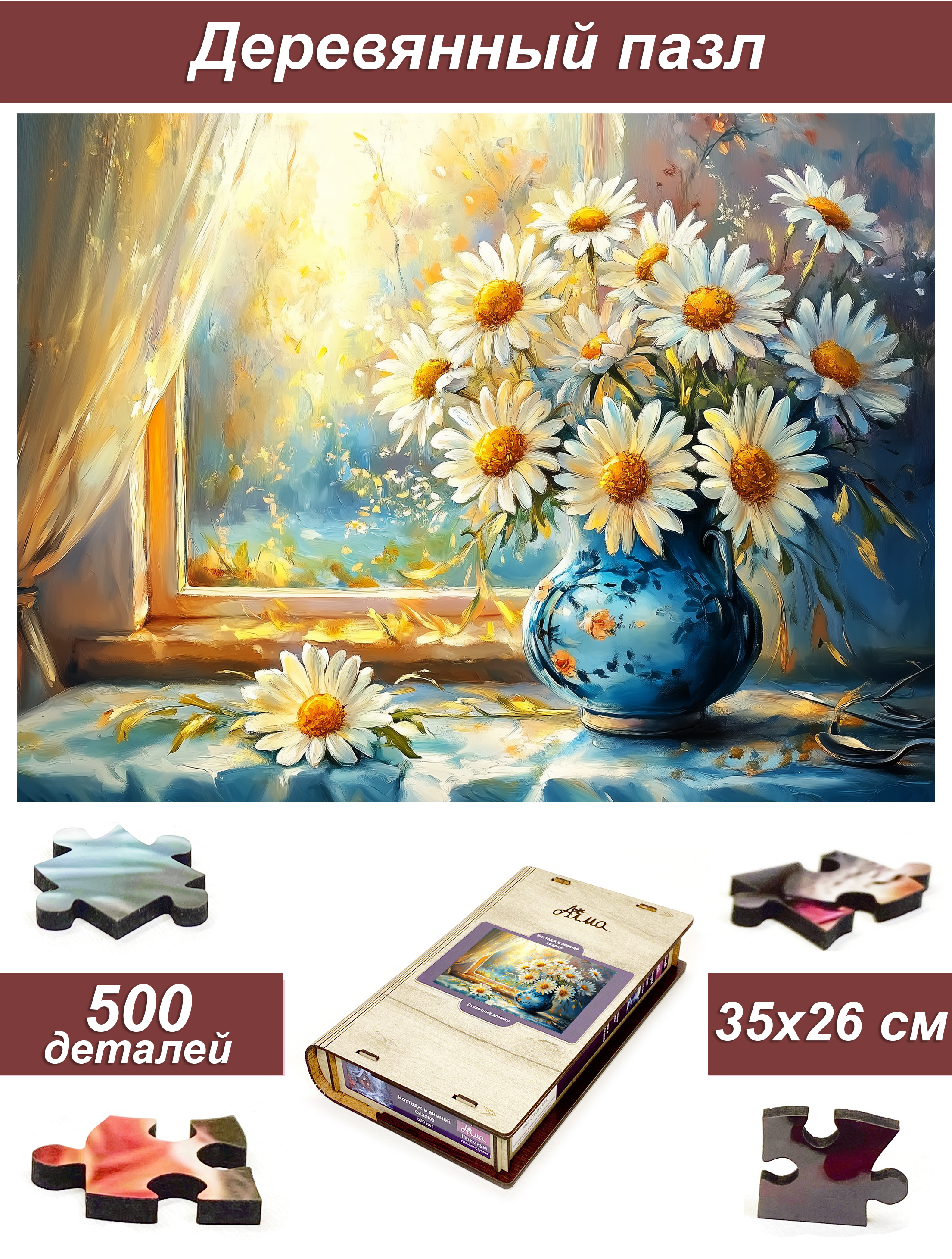 Пазл Алма деревянный 500 деталей. Цветы и натюрморты. Солнечные ромашки