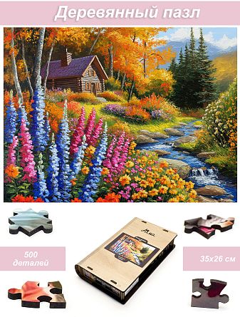 Пазл Алма деревянный 500 деталей. Волшебство природы. Домик в цветущем краю