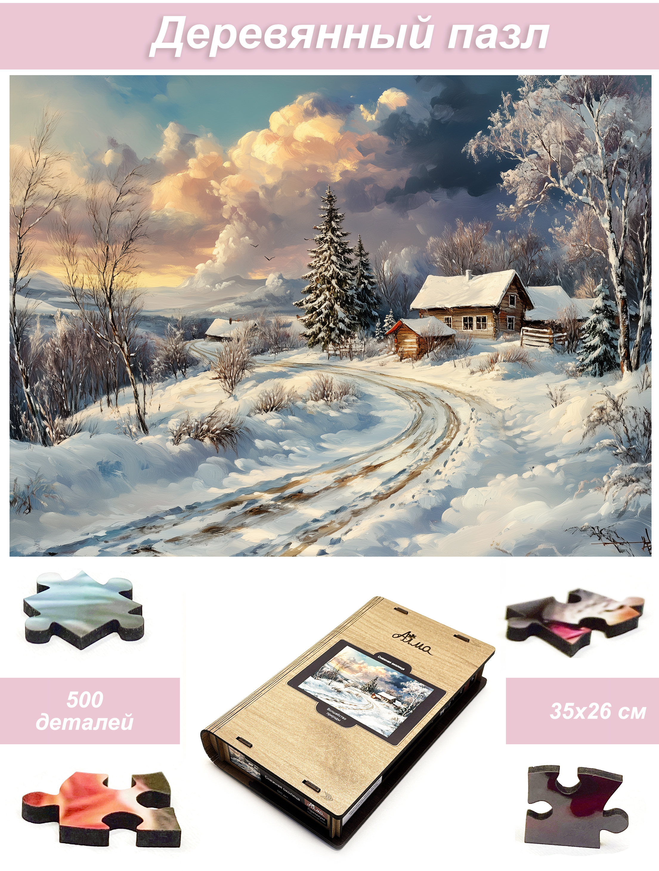 Пазл Алма деревянный 500 деталей. Волшебство природы. Снежная околица