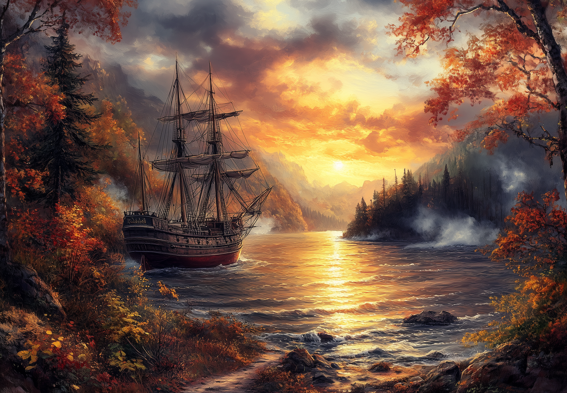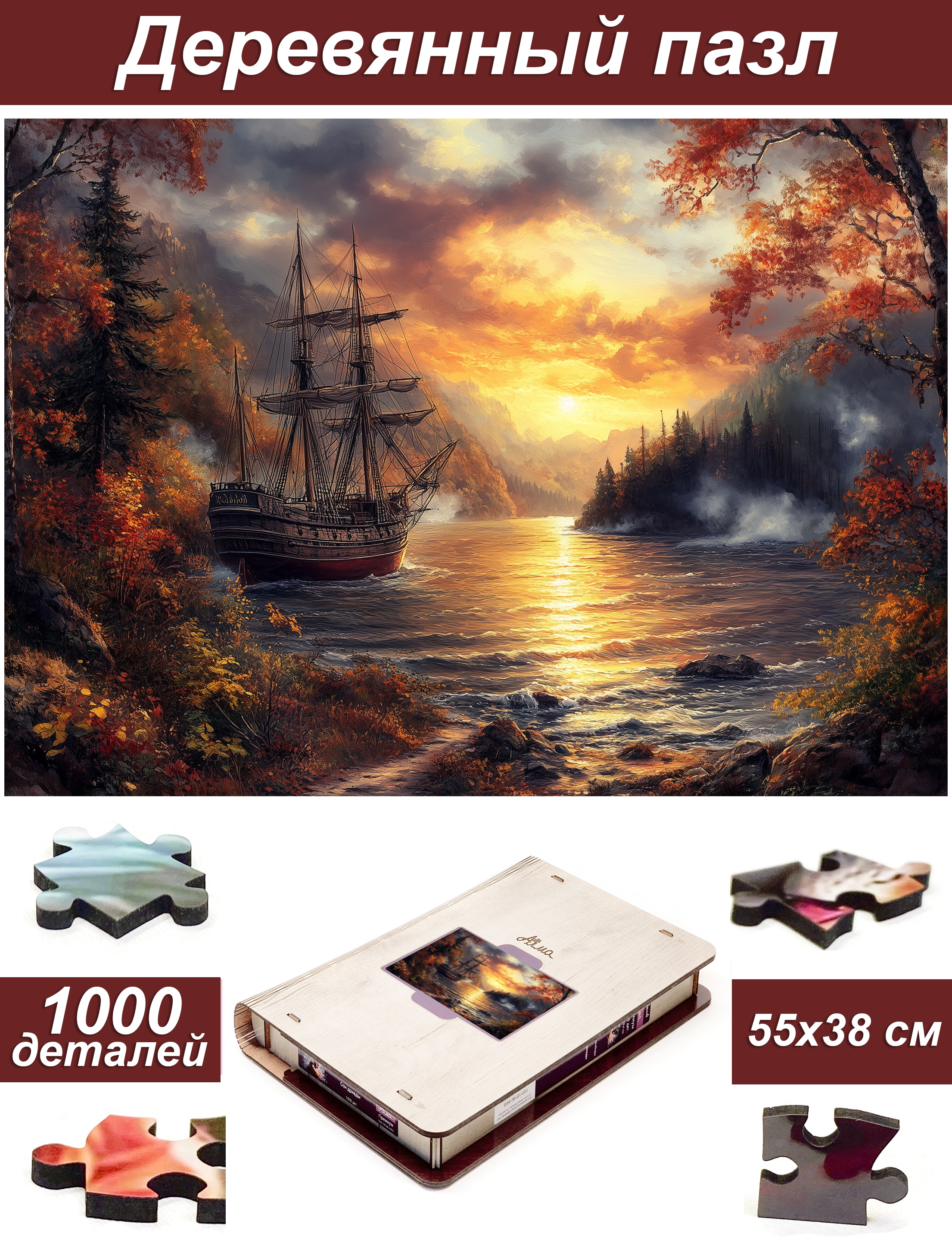 Пазл Алма деревянный ПРЕМИУМ 1000 деталей. Корабли и море. Закат странствий