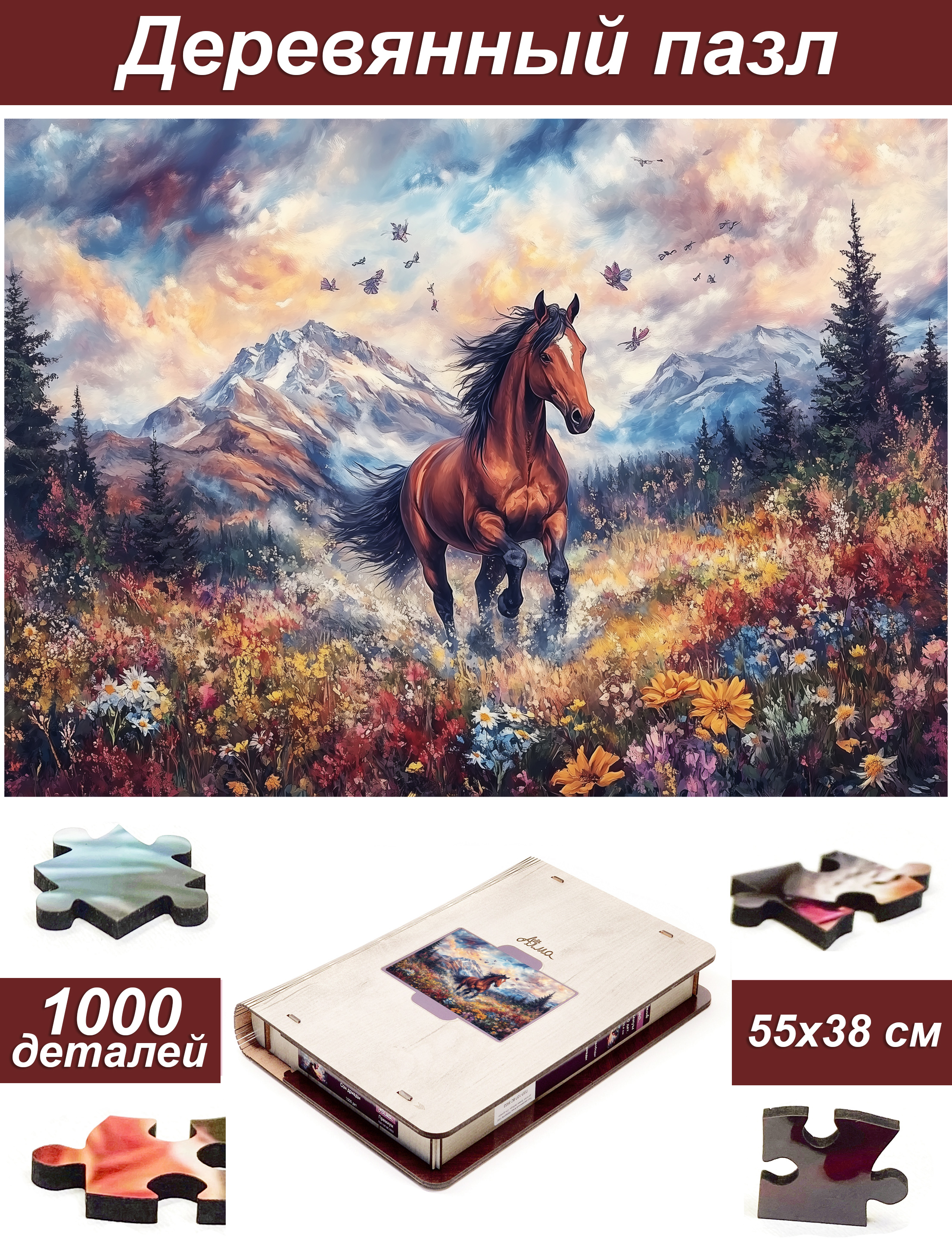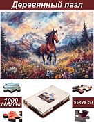 Пазл Алма деревянный ПРЕМИУМ 1000 деталей. Лошади. Дикая грация