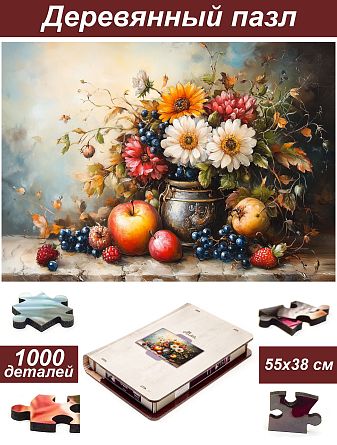 Пазл Алма деревянный ПРЕМИУМ 1000 деталей. Цветы и натюрморты. Щедрость природы