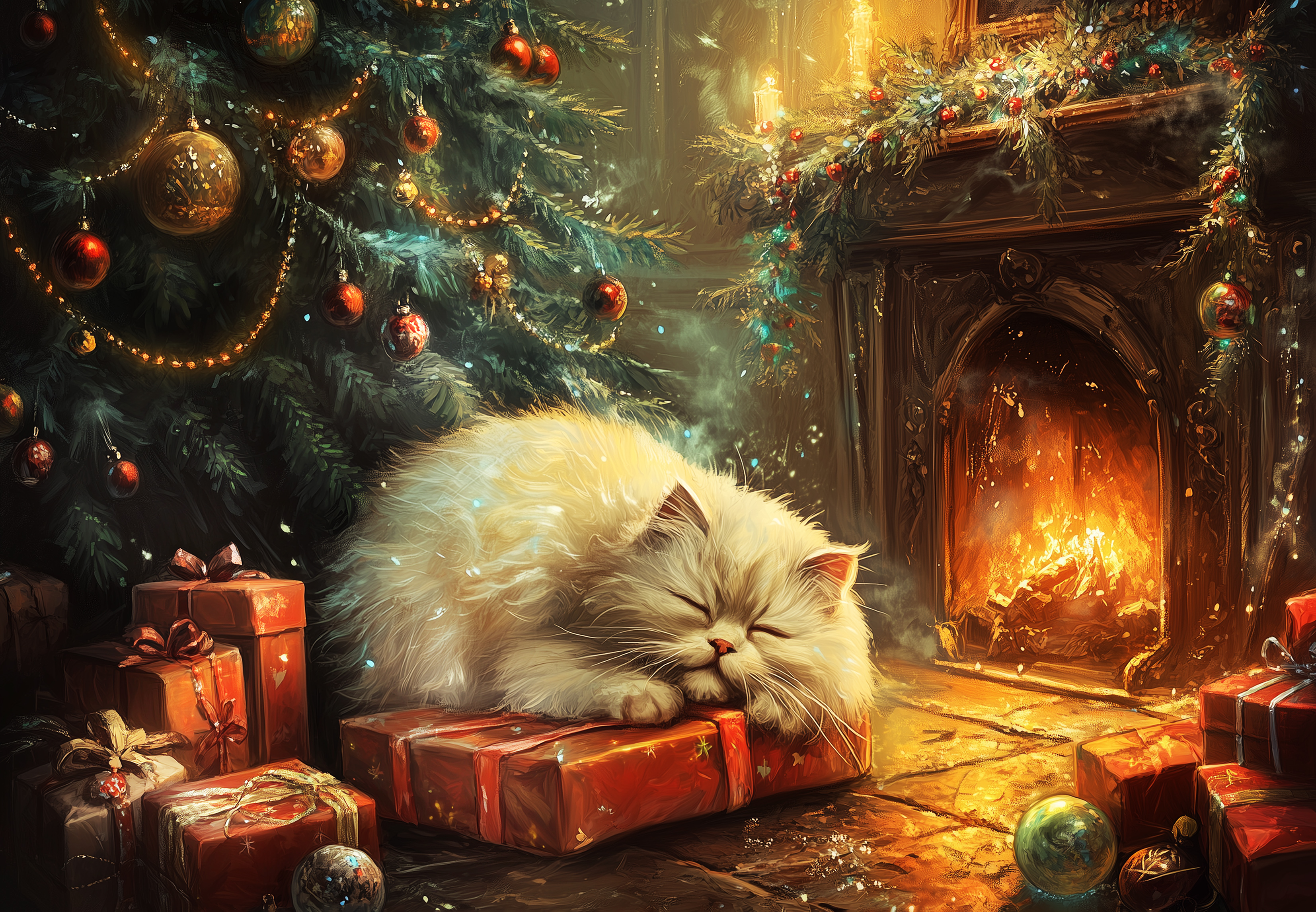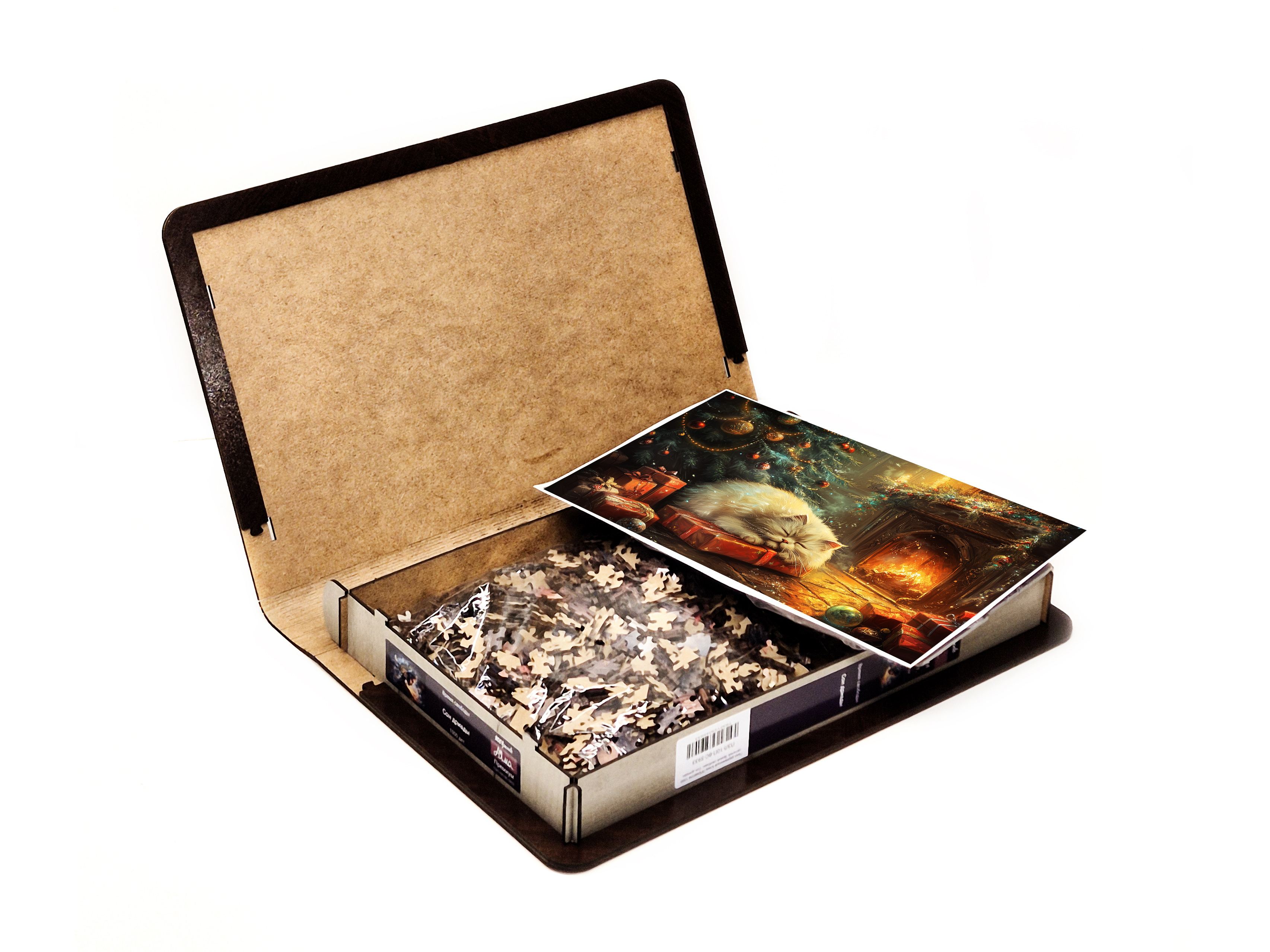 Пазл Алма ПРЕМИУМ деревянный 1000 деталей. Новый год. Кот у рождественского огня