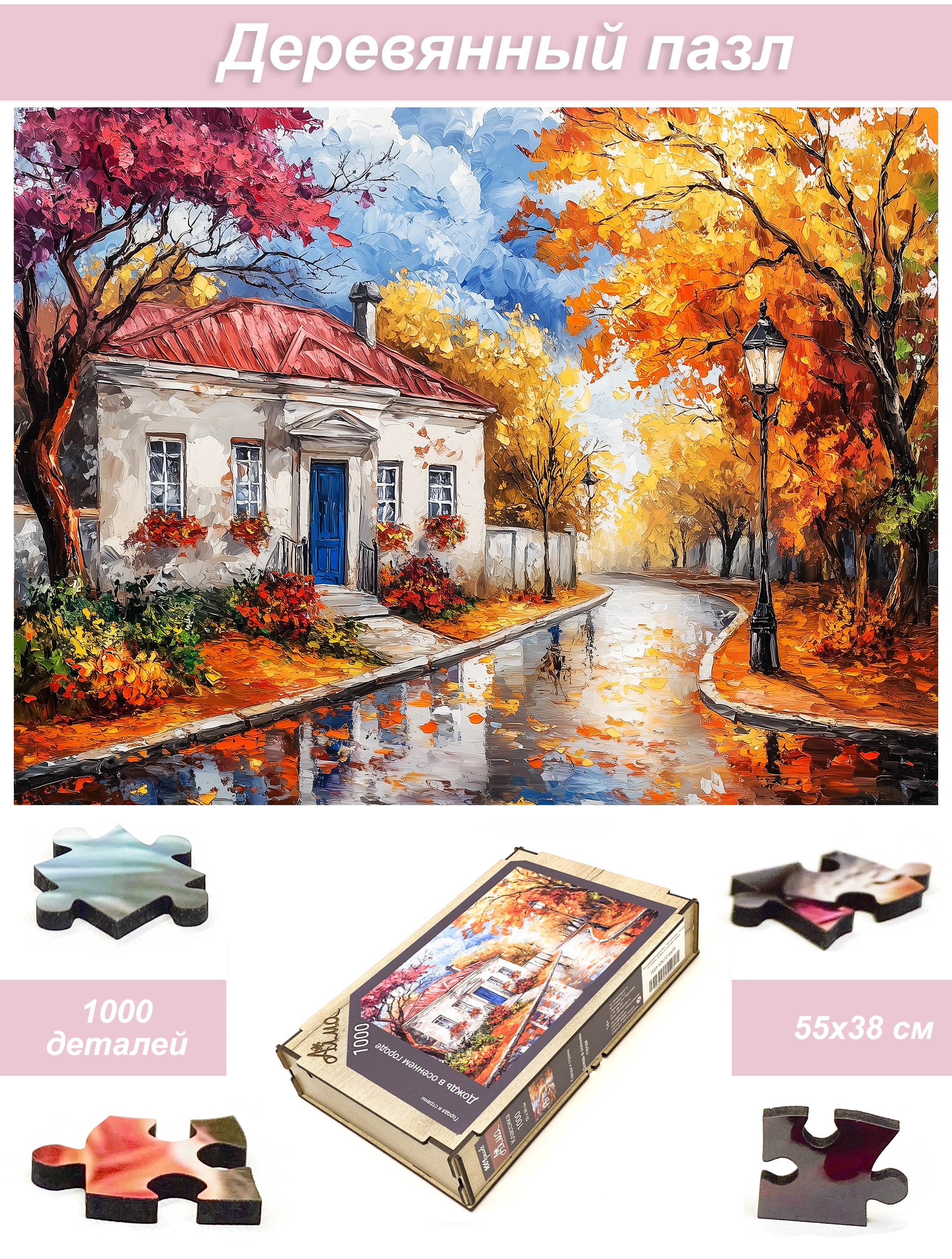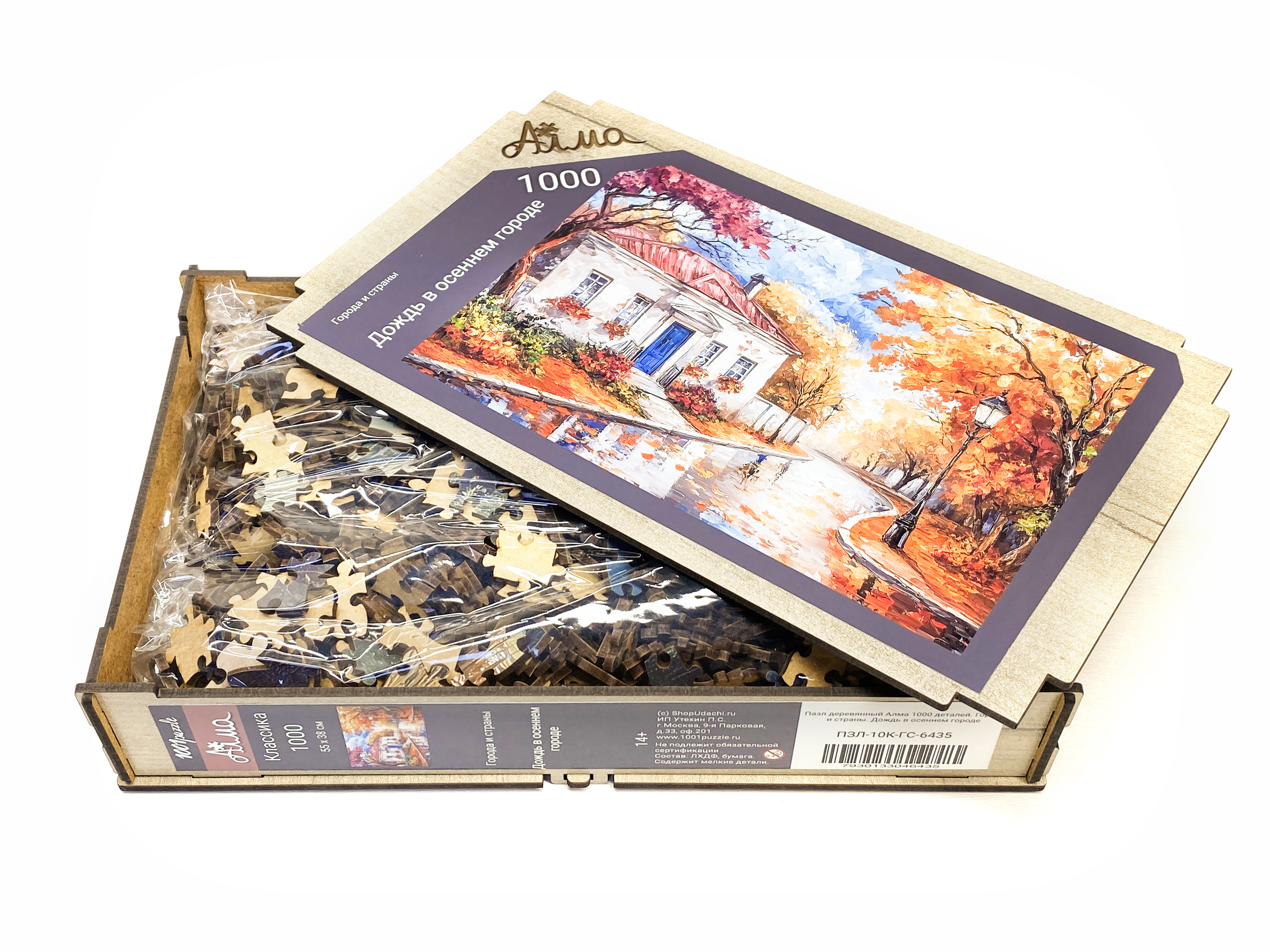 Пазл деревянный Алма 1000 деталей. Города и страны. Дождь в осеннем городе