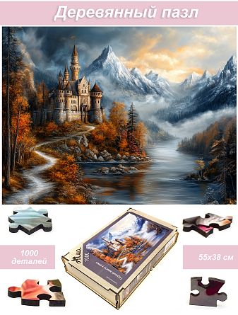 Пазл деревянный Алма 1000 деталей. Сказочный мир. Горный замок у реки