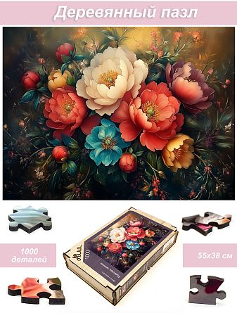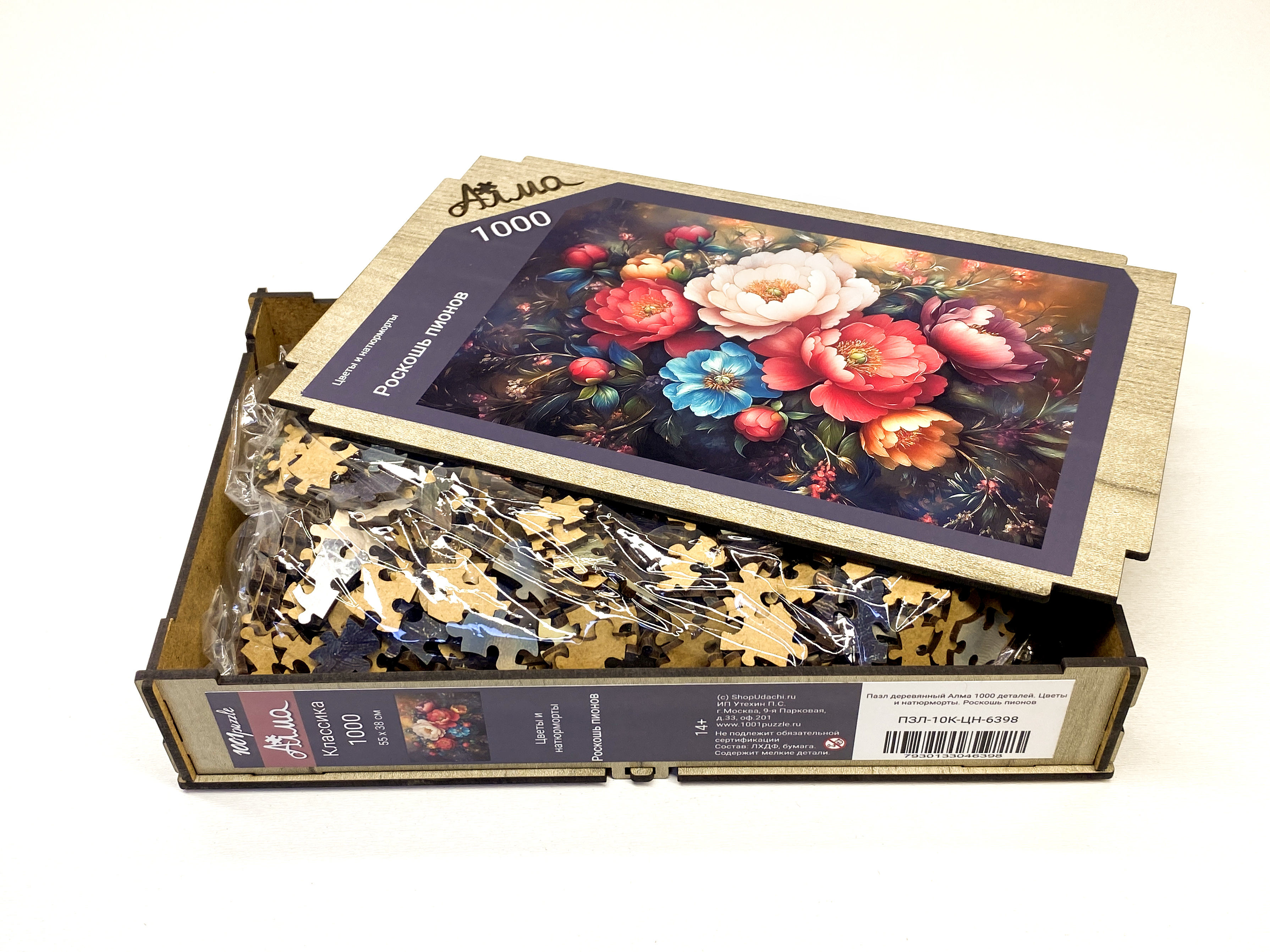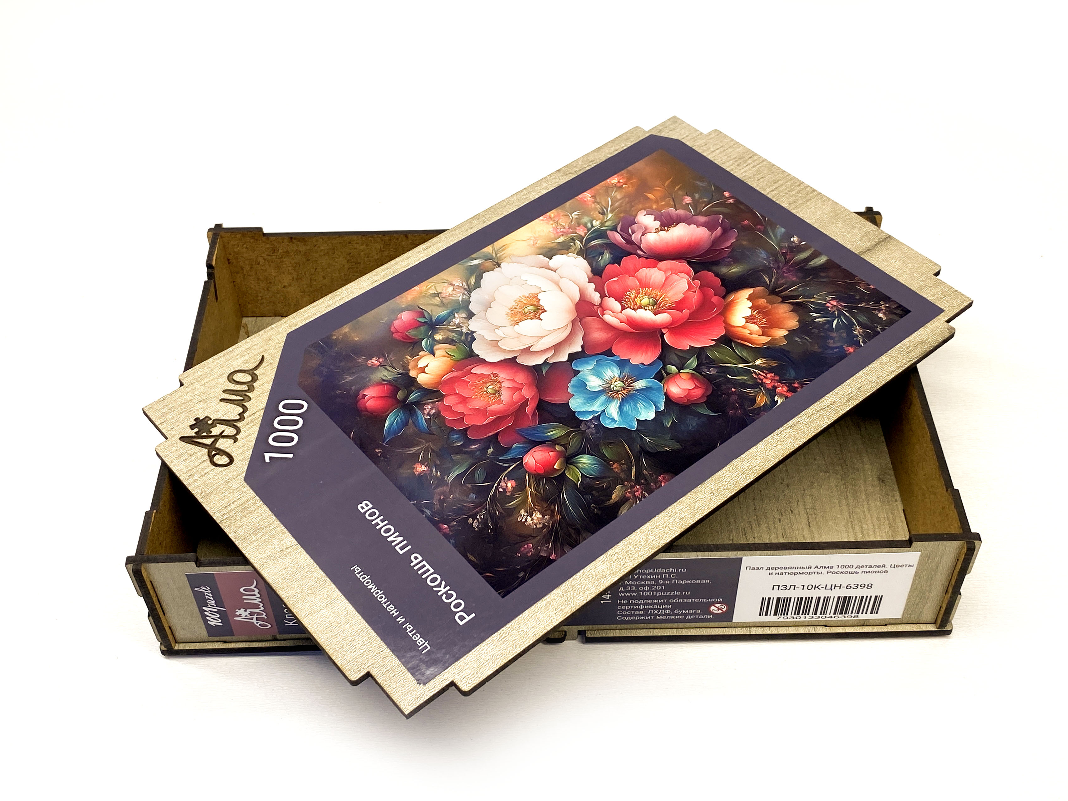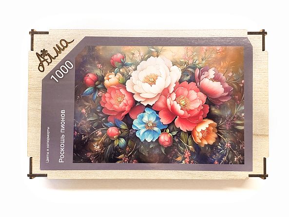 Пазл деревянный Алма 1000 деталей. Цветы и натюрморты. Роскошь пионов