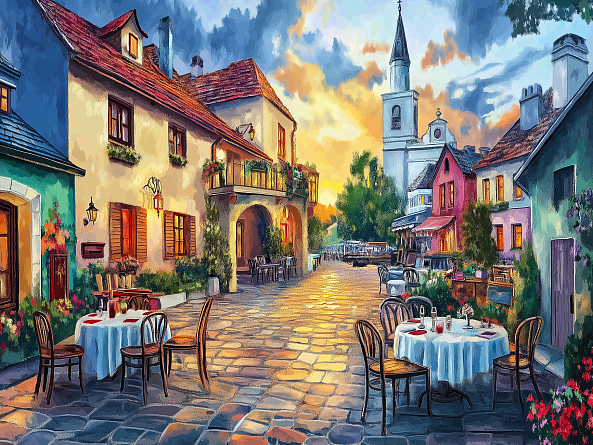 Пазл деревянный Алма 500 деталей. Города и страны. Вечернее кафе под закатным небом