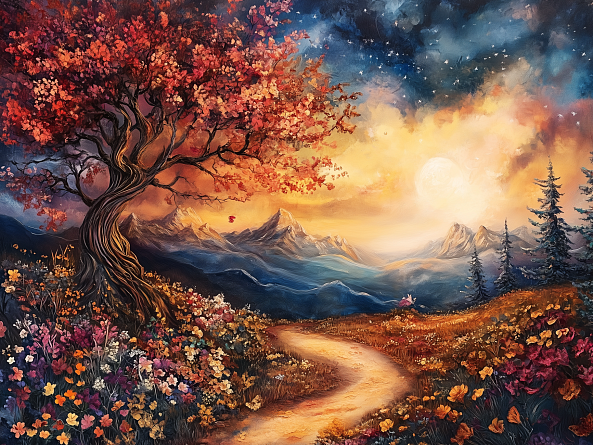 Пазл деревянный Алма 500 деталей. Волшебство природы. Дерево среди гор и цветов
