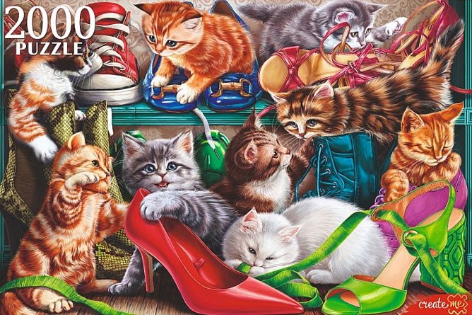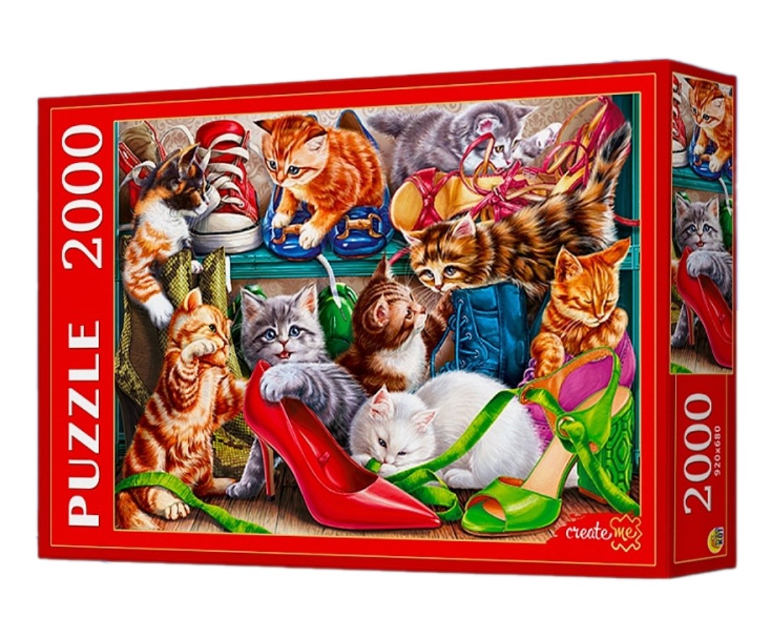 Пазл Рыжий Кот 2000 деталей: Котята на обувной полке