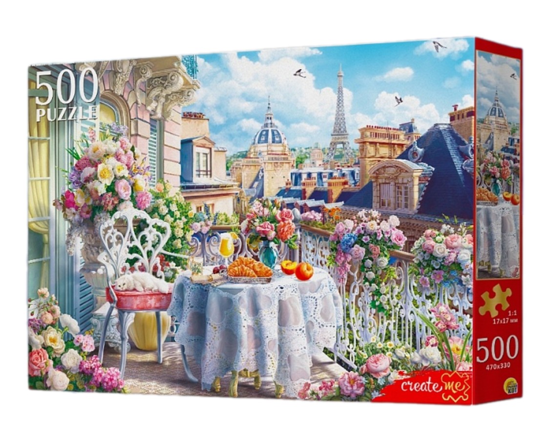 Пазл Рыжий Кот 500 деталей: Завтрак на балконе в Париже