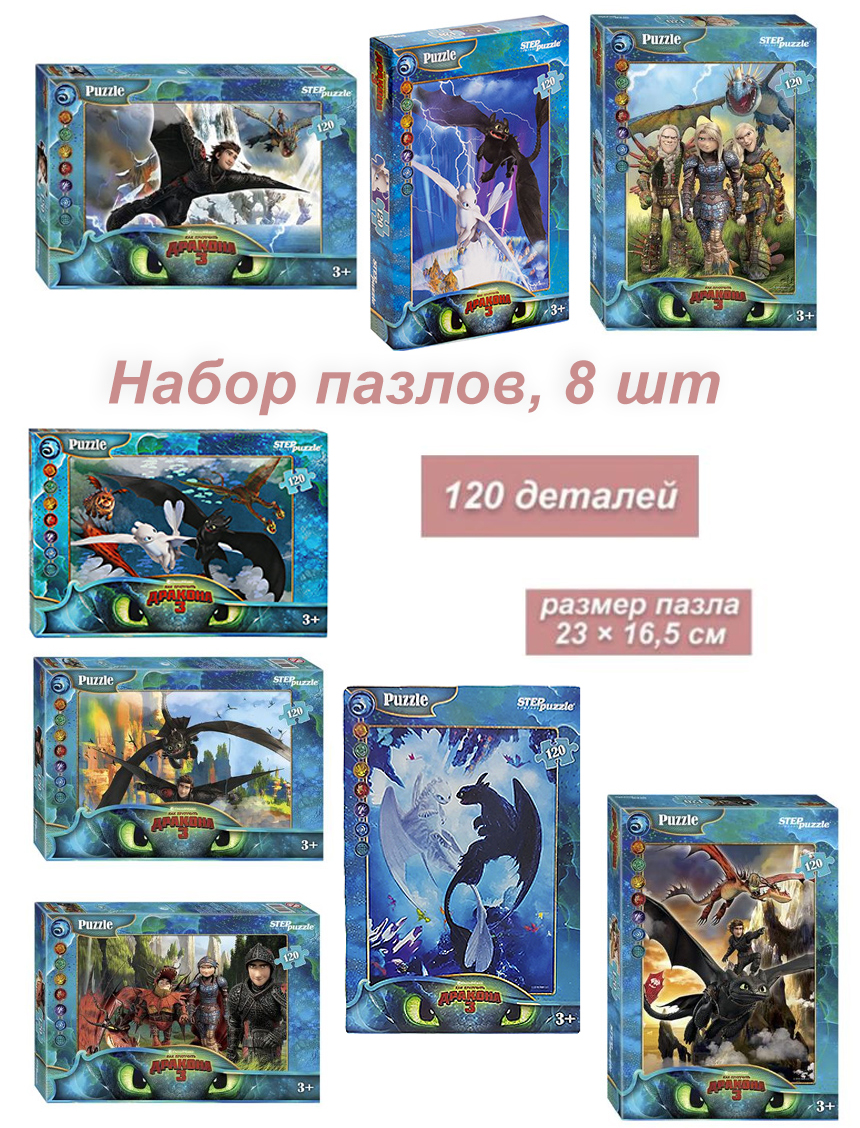 Любимые герои популярного мультфильма "Как приручить дракона" снова с нами! Астрид, Иккинг, Беззубик, Сморкала, Забияка и Задирака - вот что ждет в наборе пазлов от бренда Step.