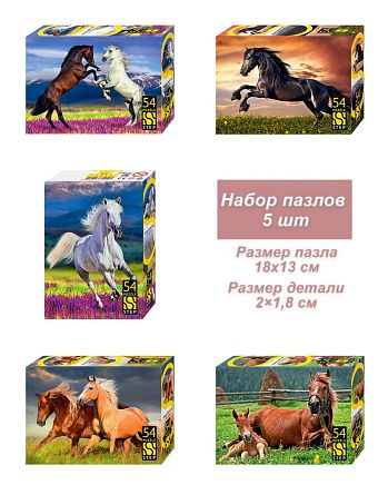 Набор 5 пазлов по 54 детали Step: Лошади. Символ года