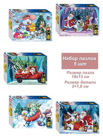 Набор 5 пазлов по 54 детали Step: Новогодние приключения