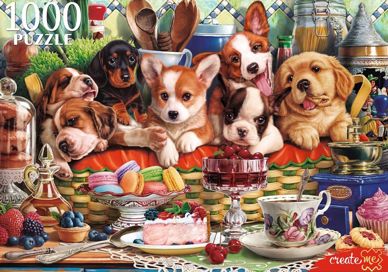 Пазл Рыжий Кот 1000 деталей: Щенки в корзине