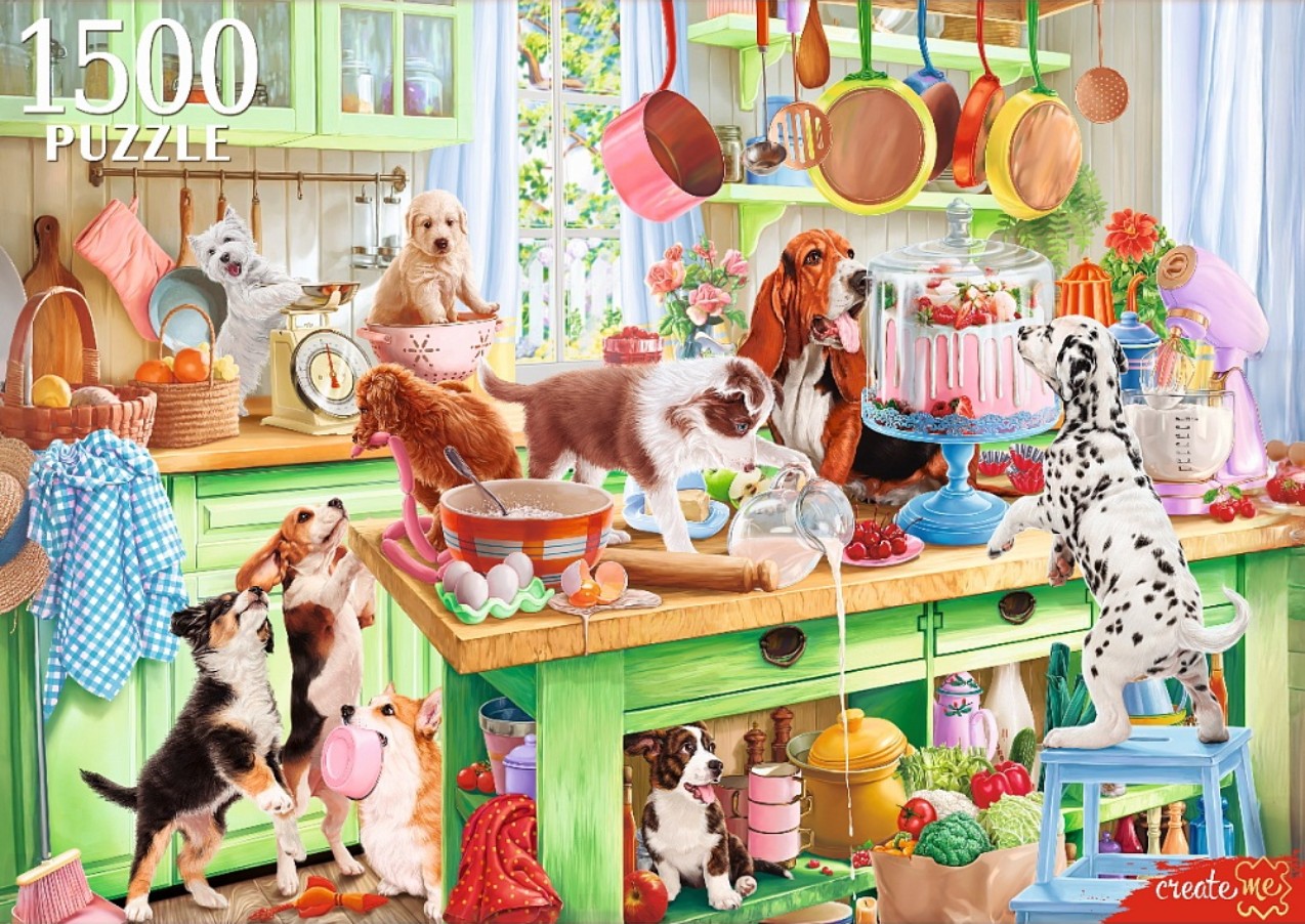 Пазл Рыжий Кот 1500 деталей: Компания собак на кухне