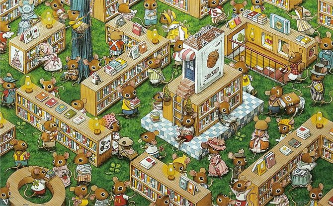 Пазл для тех, кто любит книги и мышек, в том числе для меня. Давно хотела попробовать смарт. Да, собирать сложно, но возможно. Начинать лучше с зеленого. )