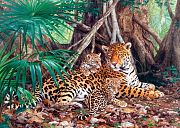 Для любителей семейства кошачьих. Ягуар и два малыша отдыхают в джунглях. Красивые, грозные и, одновременно милые рыжие кошки ждут встречи  с вами.