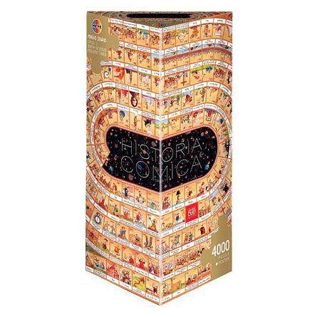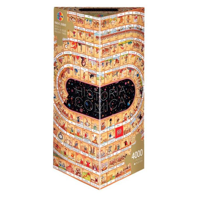 История мира. Опус первый - это пазл с изображением в мультяшном стиле, на котором схематично указано развитие нашего мира, но не все, а всего лишь часть, а если быть точным - первая часть, т.е. опус первый. Автор Марино Дегано. Упаковка - оригинальная треугольная коробка. 49х27х14