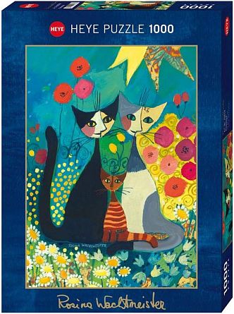 Пазл с изображением трех кошек, сидящих на полянке. Художница Розина Вахтмейстер.
