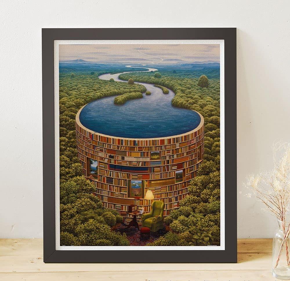 Устроиться с книжечкой в таком необычном кабинете-библиотеке - мечта любого книгомана! Кругом - бескрайние леса, сверху - извилистая речушка, есть возможность посидеть в удобном кресле с высокой спинкой, да и еще и под боком торшер, который светит теплым светом... Соберите из 2000 деталей репродукцию замечательной картины польского художника Яцека Йерки "Библиотека", которая перенесет вас в фантазийный мир этого талантливого мастера кисти.
