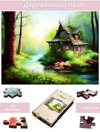 Пазл деревянный Алма 300 деталей Сказочные домики. Домик №1