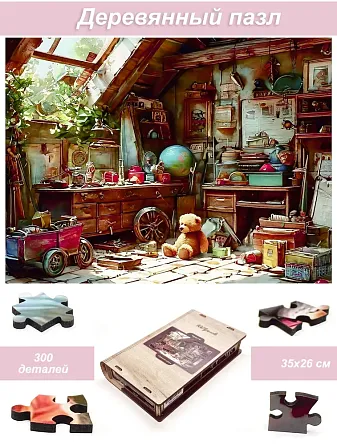 Пазл деревянный Алма 300 деталей Странное время. Чердак
