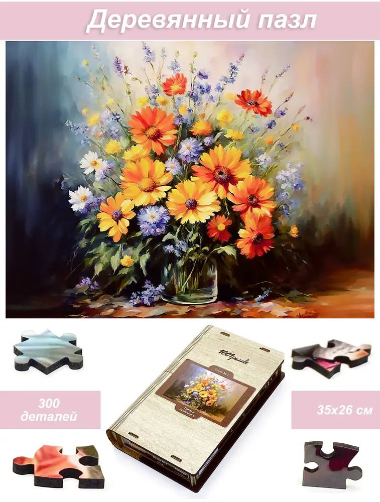 Пазл деревянный Алма 300 деталей Цветы и натюрморты. №1