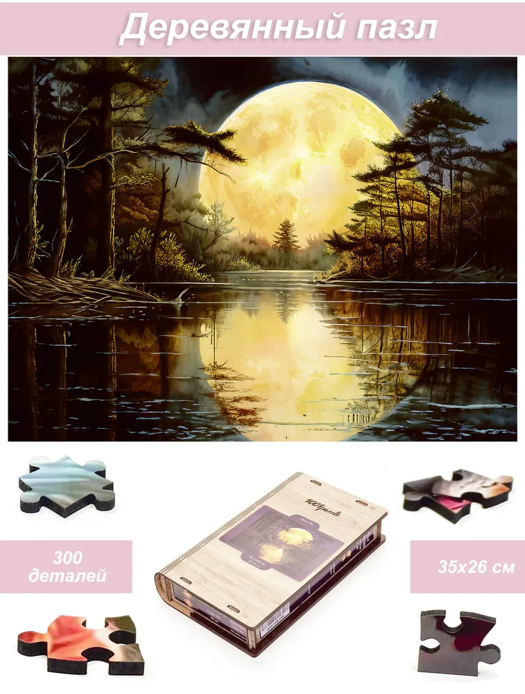 Деревянный фигурный пазл бренда 1001puzzle - уникальная настольная игра, прекрасный подарок для взрослых и для детей. Деревянная головоломка с нестандартной нарезкой состоит из 300 ярких фигурных деталей. Каждый элемент пазла - уникален, что делает сборку еще увлекательнее. Пазлы из дерева отличаются от обычных картонных надежностью и долговечностью. Кроме того, они станут прекрасным украшением интерьера, будет радовать не только в момент сборки, но и после. В нашем ассортименте есть и яркие, веселые пазлы, есть и имитация картин, пейзажи, домашние и дикие животные. Можно подобрать рисунок на любой вкус. Пазл упакован в уникальную коробку - она же служит местом для сборки, а, при желании, вы можете использовать планшет для сборки как рамку, чтобы закрепить картину и повесить ее на стену. Все пазлы мы упаковываем дополнительно в надежную транспортировочную коробку и, очень надеемся, что она поможет пережить нашему товару сложную дорогу к вам.