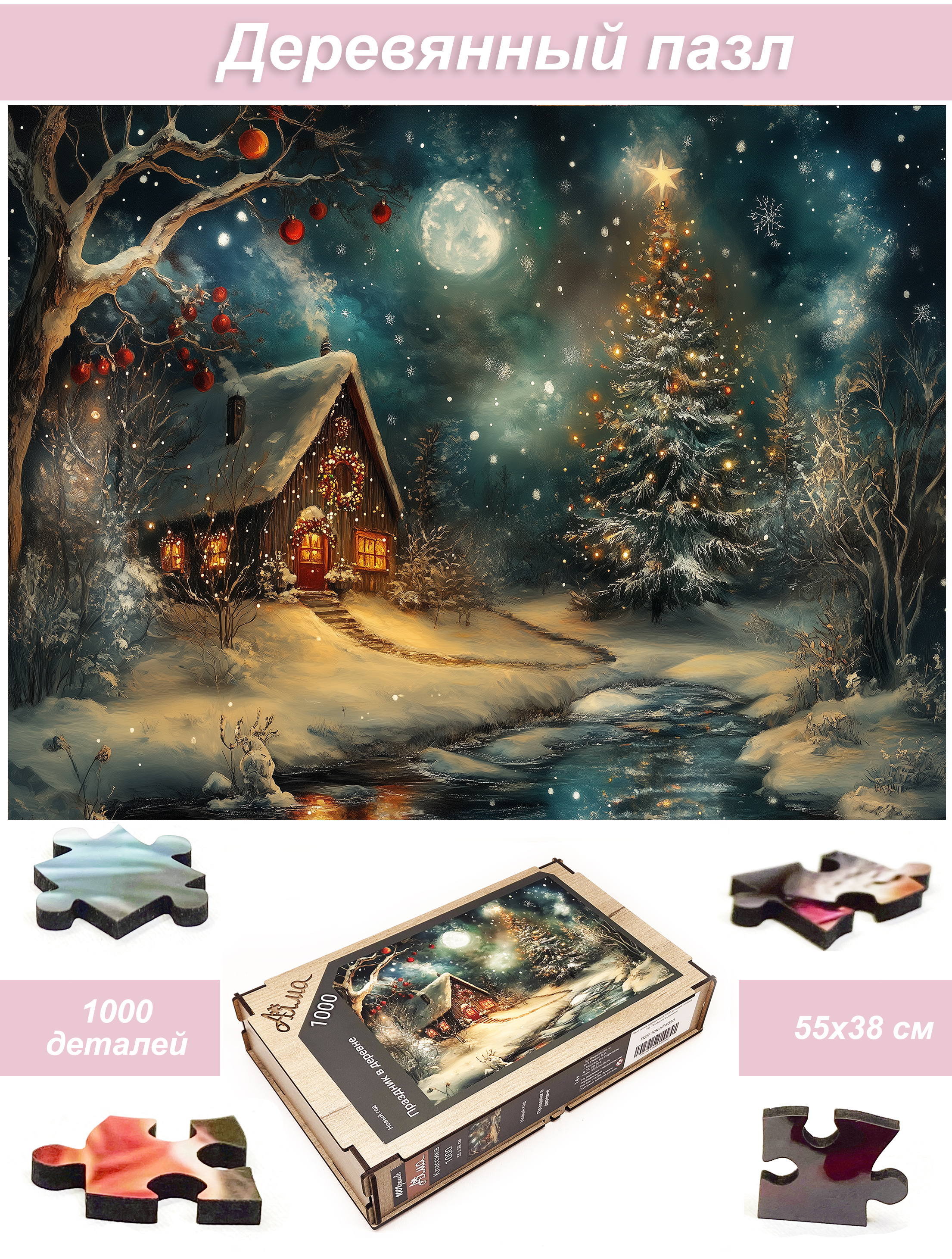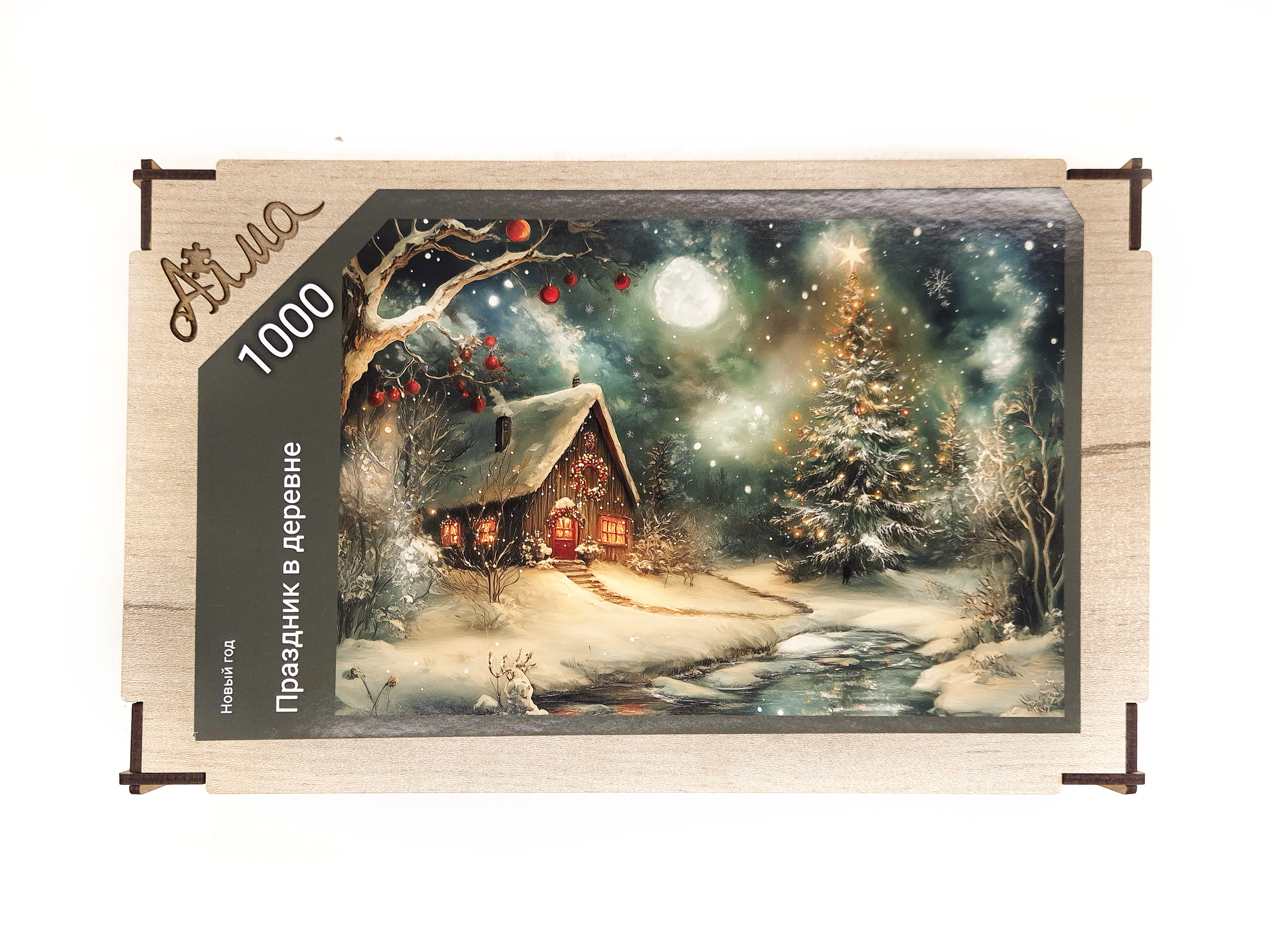 Пазл Алма деревянный 1000 деталей. Новый год. Праздник в деревне