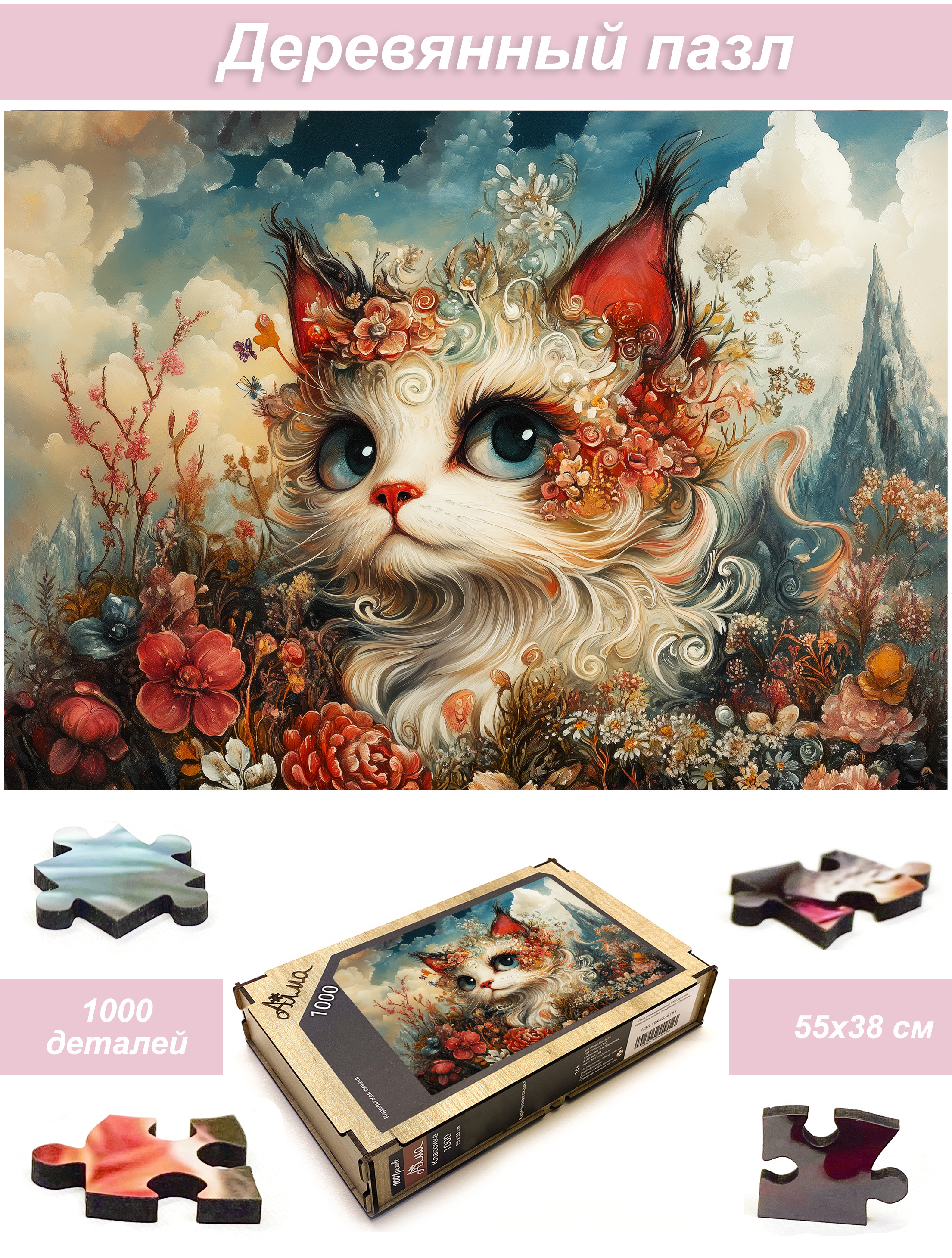 Пазл Алма деревянный 1000 деталей. Пушистые создания. Сказочный кот